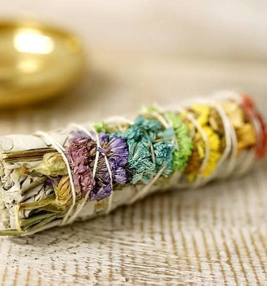 It is a bundle of white sage with flowers of the seven chakras. I